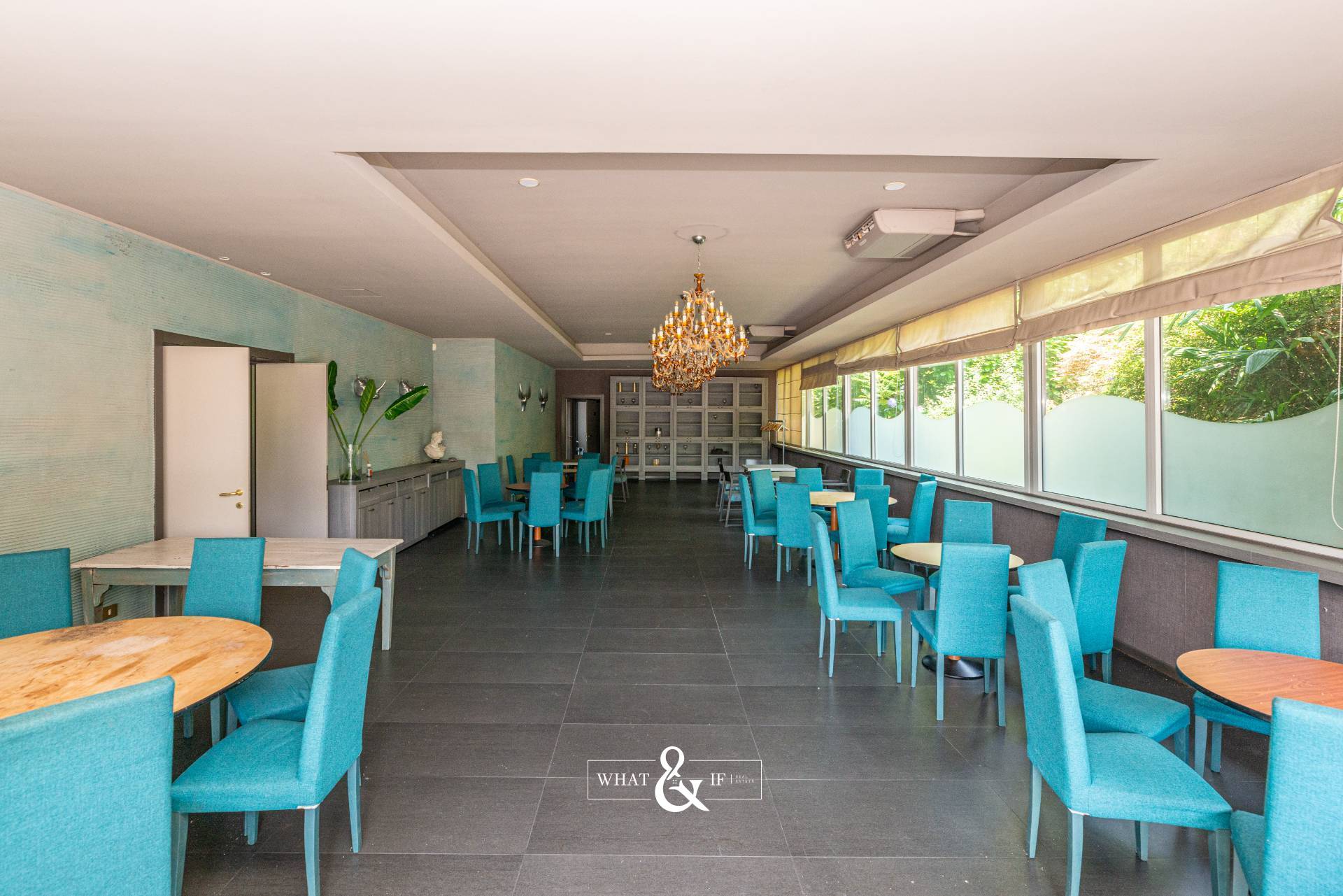 In piena Brianza, immerso in un parco privato di circa 26.300 mq, proponiamo immobile con destinazione commerciale ad oggi ad uso ristorante disposto su due livelli con locali di servizio e accessori seminterrati. Composto da due grandi sale ricevimenti al piano terra ed una molto ampia al piano primo con terrazzo oltre ai locali accessori. Immobile attrezzato e arredato, pronto per l’avvio della nuova attività. Giardino e bosco di proprietà oltre ad un’ampia area per il parcheggio. Su strada di passaggio con doppio cancello e completamente indipendente. Piano terra di 580 mq più porticato di circa 145 mq; piano primo di 385 mq più terrazzo di 160 mq; piano seminterrato di 460 mq.