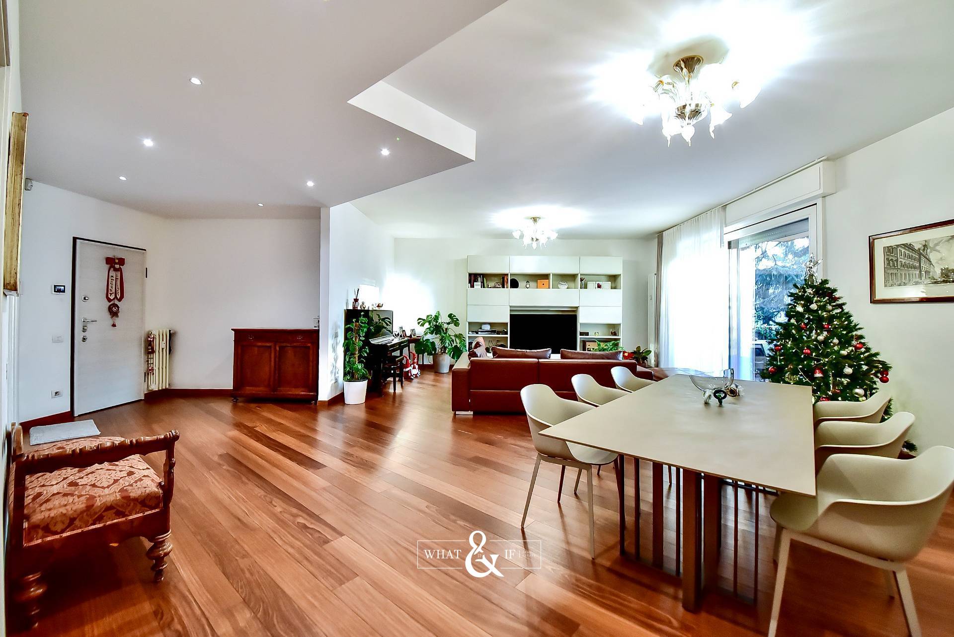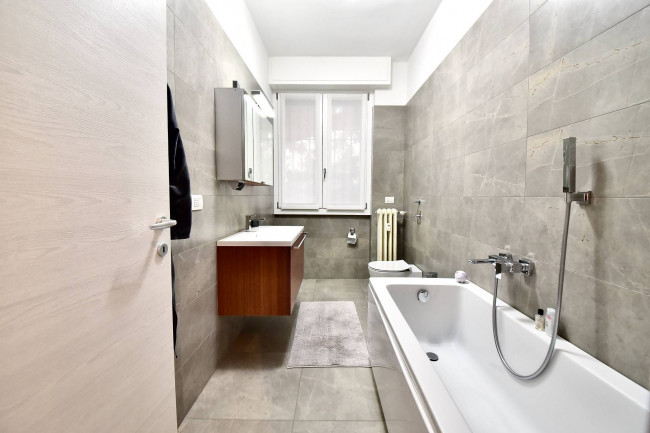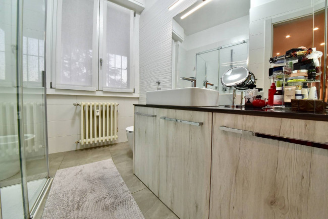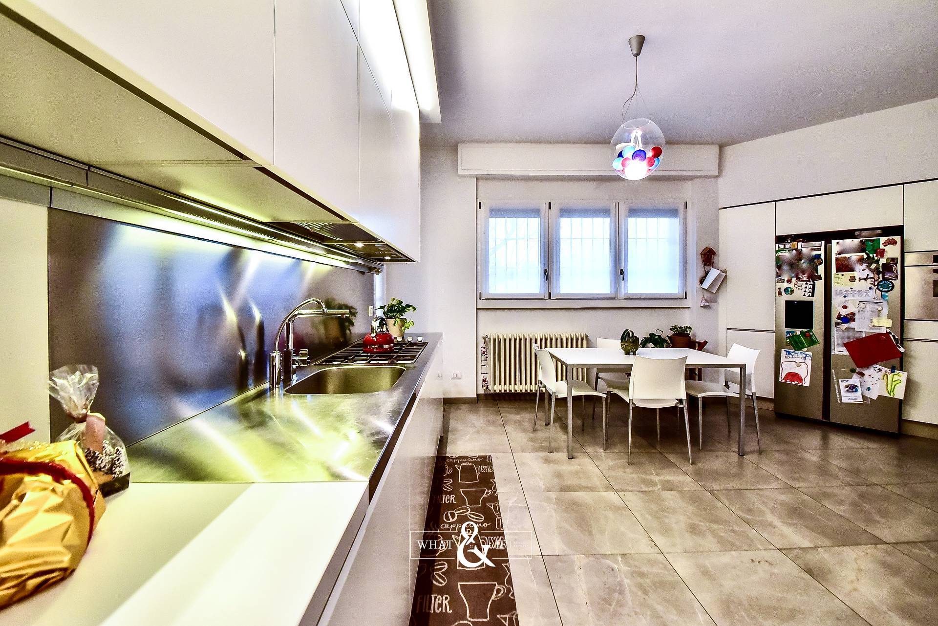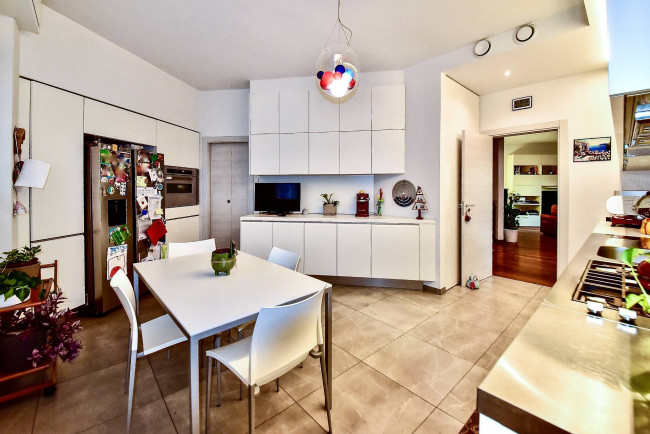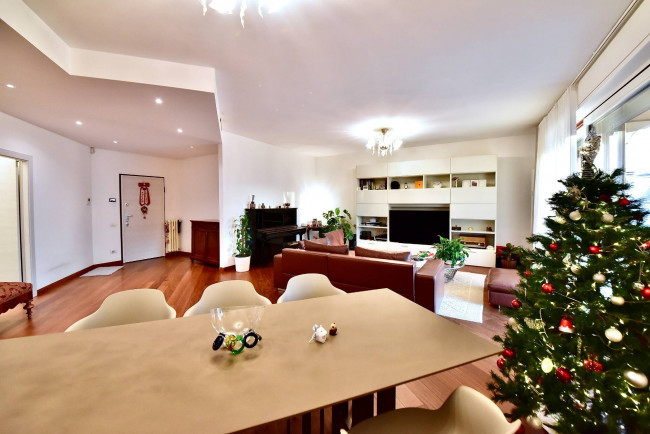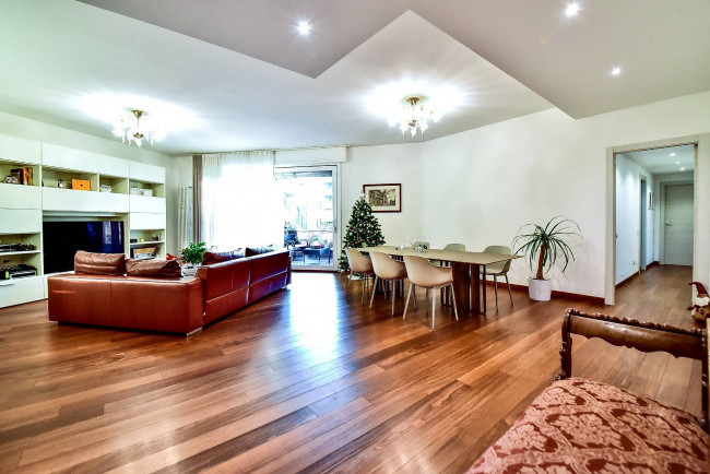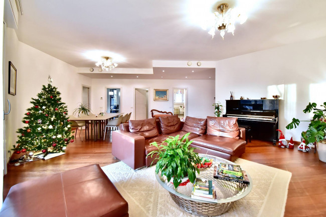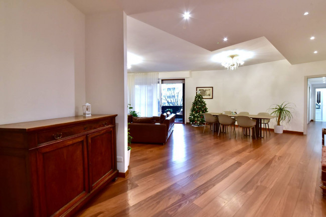 In splendido contesto condominiale signorile della fine degli anni ’70, di poche famiglie, inserito in una palazzina di soli 3 piani, al secondo piano proponiamo luminosissimo appartamento di 200 mq disposto su un unico livello e completamente ristrutturato a nuovo. Doppio ingresso (ingresso di servizio in cucina), salone triplo con uscita diretta sul terrazzo coperto di 25 mq circa, una cucina separata di generose dimensioni con incluso un vano dispensa e uscita sul balcone di servizio, bagno ospiti finestrato con doccia doppia e dotato di antibagno, camera/studio con uscita sul balcone di servizio, tre camere da letto di cui una matrimoniale con bagno dedicato (anche se non interno alla camera) e bagno al servizio delle altre due camere. Peculiarità dell’appartamento sono sicuramente il fatto che tutti i bagni sono dotati di finestra. Impianto di raffrescamento/riscaldamento canalizzato (sistema inverter), impianto di antifurto volumetrico e perimetrale con predisposizione telecamere interne ed esterne, motorizzazione completa delle tapparelle attivate in parziale domotica e zanzariere a tutte le finestre. Completa la proprietà un vano cantina. Box doppio (prezzo a parte). Zona strategica, palazzina di forte impatto, disponibile in pochi mesi.